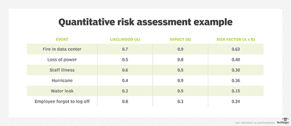 Quantitative risk assessment This table illustrates an example of a quantitative assessment.